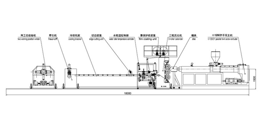 该设备用于生产粉料 PVC 挤出透明片,可替代压延 PVC 片材