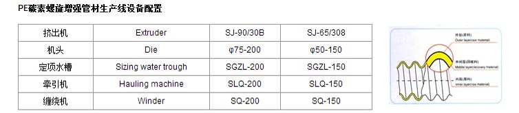 PE碳素螺旋增强管材生产线设备配置