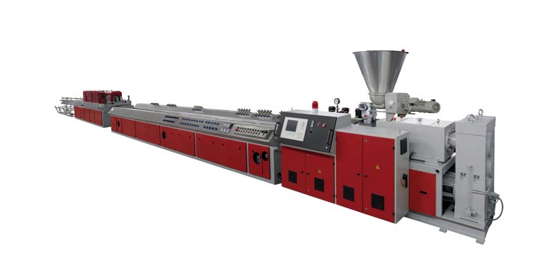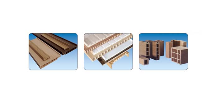 木塑挤出生产线:采用特殊设计的螺杆机筒、模具及挤出机加工生产工艺生产木塑产品。公司产品系列:木塑一步法厚板设备;木塑一步法异型材设备;木塑一步法装饰材设备;木塑造粒设备;各种木塑模具。挤出机单机两级混合直接挤出,也可造粒后两步法挤出,省电省空间,具有产量高,挤出压力稳定,预热加料机置于主机顶部,先抽出大部分木粉中残留的水份,使主机加料段更加充实;塑化混炼效果好等特点。优化的螺杆设计使用使剪切小,不易剪断木质纤维,能使物料在机内停留时间均匀。螺杆机筒采用双金属处理,耐磨耐腐蚀,使用寿命大大延长。该生产线能生产PE、PP或PVC木塑异型材制品,主要用于托盘,包装箱板,地板,户外装饰材料等,用途十分广泛。木粉及植物纤维添加量高(最高可达50-75%);设备适应能力强,可同时加工PP、PE、ABS、PS等。